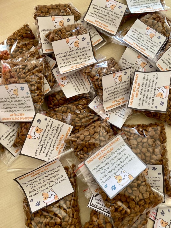 Okulumuzda, 4 Ekim Hayvanları Koruma Günü ve Yeşil Vatan Projesi kapsamında öğrencilerimizin hayvan sevgisini ve duyarlılığını artırmak amacıyla anlamlı etkinlikler gerçekleştirildi. İngilizce Öğretmenimiz Aylin ÖZKAN ve Yeşil Vatan Projesi yürütücülüğünü yapan Sınıf Öğretmenimiz Ferda PARMAKSIZ ile Fen Bilimleri Öğretmenimiz H.Avni COŞKUN rehberliğinde düzenlenen etkinliklerde öğrenciler, doğadaki tüm canlıların korunması gerektiğini vurgulayan çalışmalar yaptı. Etkinlik kapsamında öğrenciler, sokak hayvanları için mama ve yiyecek desteğinde bulunarak örnek bir davranış sergilediler. Ayrıca günün anlam ve önemini yansıtan bilgilendirici ve renkli bir pano hazırlayarak okulun çeşitli alanlarında farkındalık oluşturdular. Etkinlik sonunda öğrenciler, hayvanların sadece özel günlerde değil her zaman ilgi, sevgi ve korumaya ihtiyaç duyduğunu dile getirdiler.