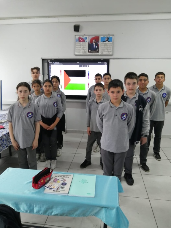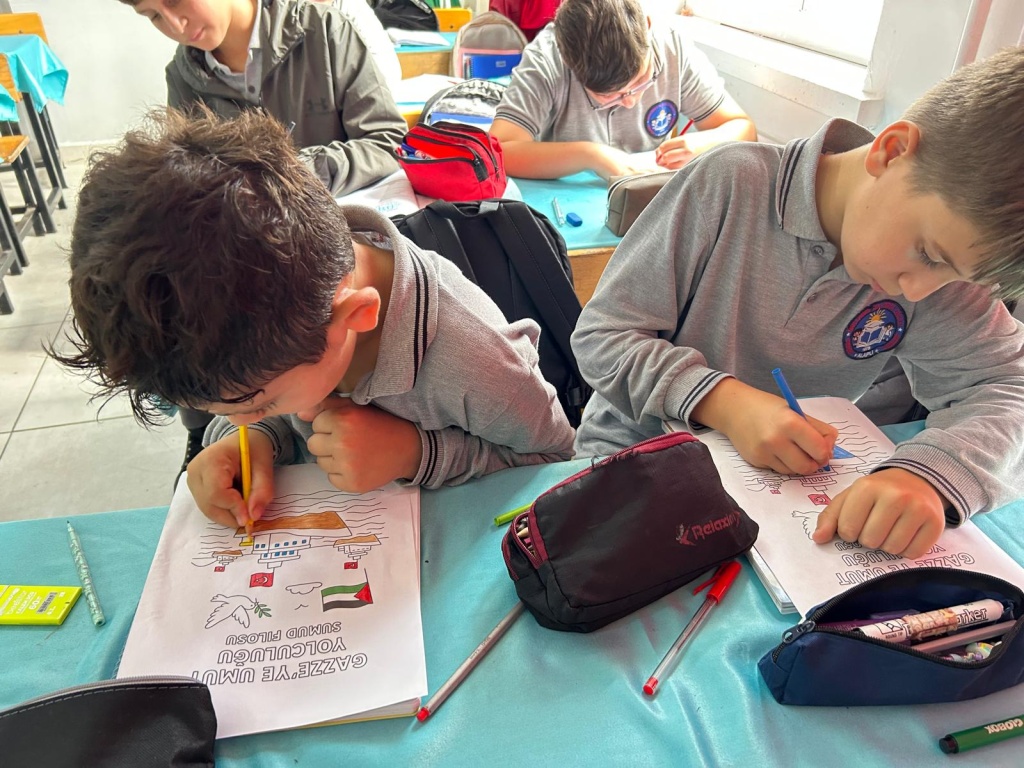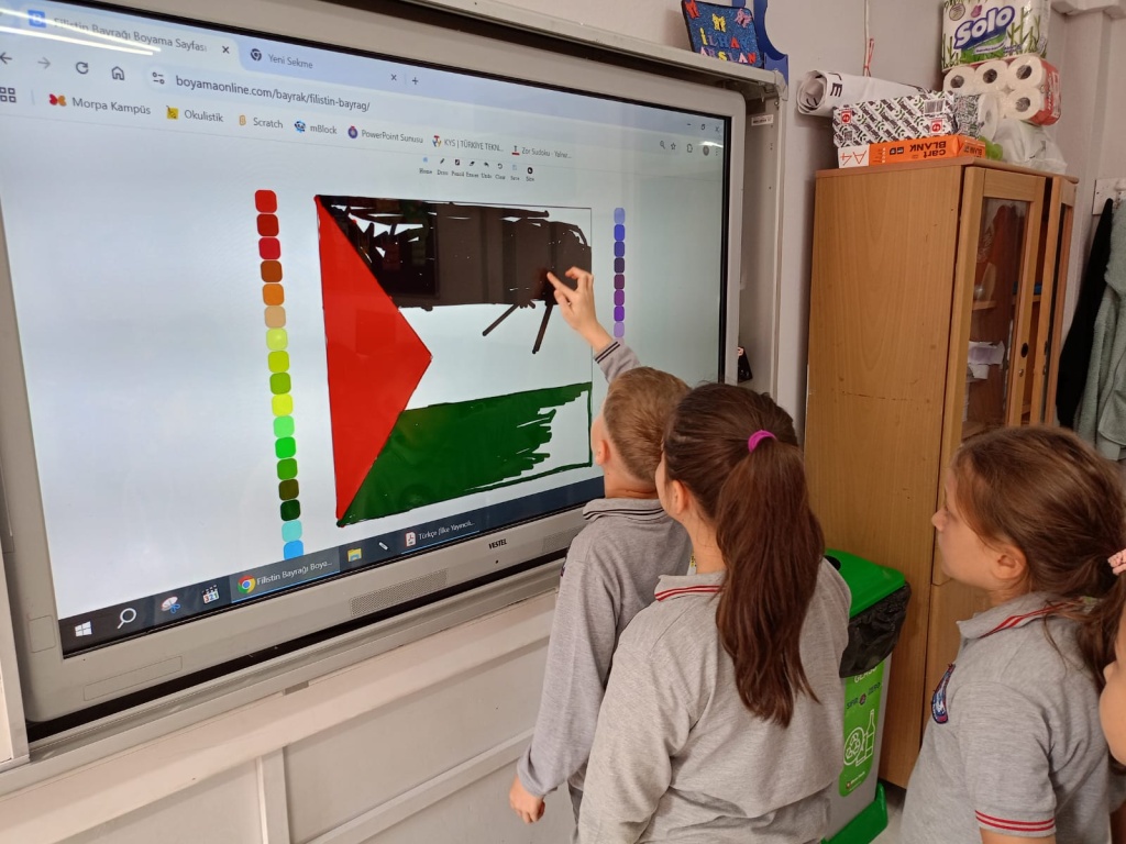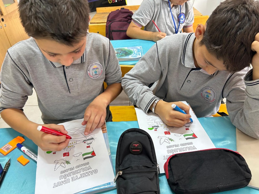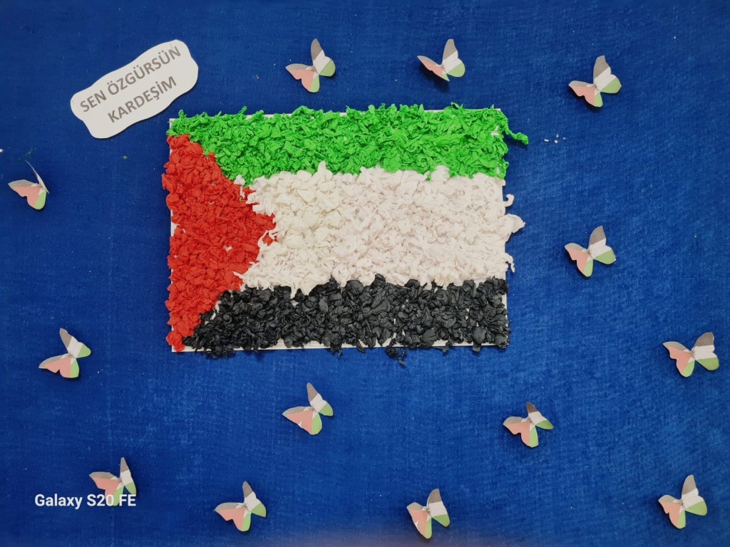 Filistin’de yaşanan insanlık dramına dikkat çekmek ve öğrencilerde duyarlılık oluşturmak amacıyla “Filistin Farkındalık Etkinlikleri” öğretmen ve öğrencilerin yoğun ilgisiyle gerçekleştirildi. Program kapsamında, Gazze’de yaşanan olayları anlamak, barışın ve insan haklarının önemini vurgulamak amacıyla sunumlar, boyamalar, video gösterimleri ve çeşitli etkinlikler yapıldı. Öğrenciler, hazırladıkları afiş ve kısa metinlerle Filistin halkına destek mesajlarını dile getirdiler. Okul idaresi tarafından yapılan açıklamada, “Bu etkinliklerle amacımız, öğrencilerimizin dünyada yaşanan zulümlere karşı bilinçlenmelerini sağlamak ve insani değerlere sahip çıkmalarına katkıda bulunmaktır.” ifadelerine yer verildi.